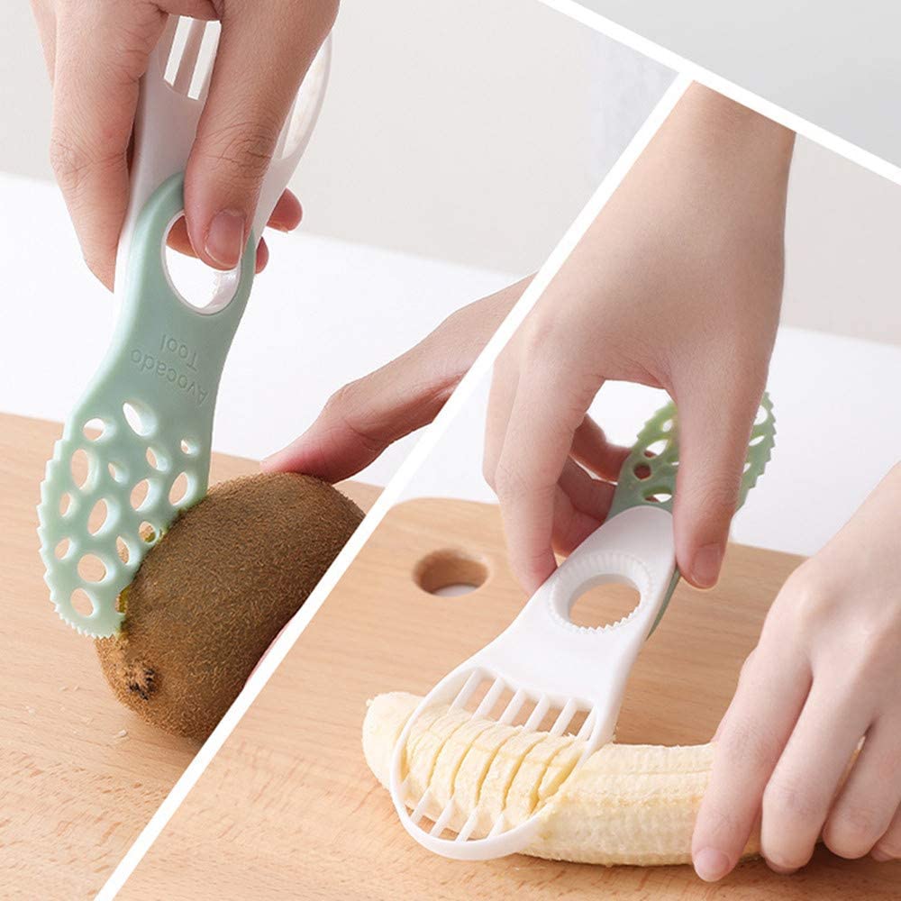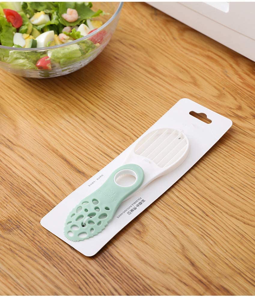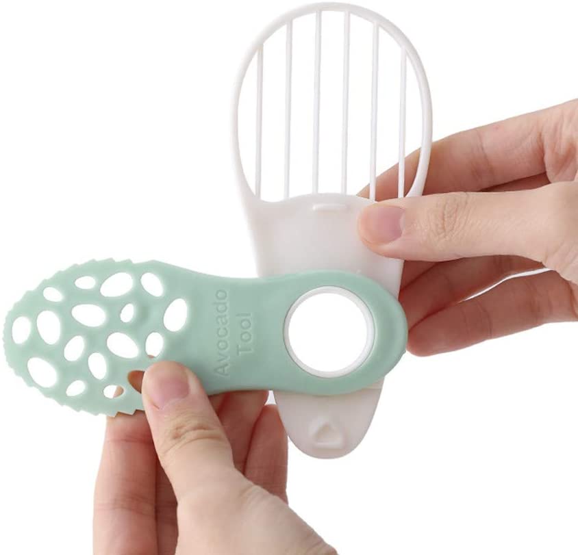 【5-in-1 Avocado Cutter】Multifunctional Avocado Splicer, 5-in-1 use for Cutter/Pitter/Fleshing Knife/Stirrer/Scooper makes avocados Cutting&Coring easy and safe. 【Innovative Design】Rotatable design, compact and portable. One side used for cutting and scraping, the other side used as slicer. The middle round hole used for coring. 【Safe Shape Design】Durable Frame and Polished edge 100% safe won’t hurt your fingers when cutting fruits. 【Not Only for Cutting Fruit】Not only used for avocado, but also used for Kiwi, dragon fruit, and more other fruits, even you can use it as a kitchen knife for cutting some vegetables. 【Reliable Material】Rust and Corrosion Resistant. Durable frame is easy to clean! Excellent choice as a kitchen tool for long time use!