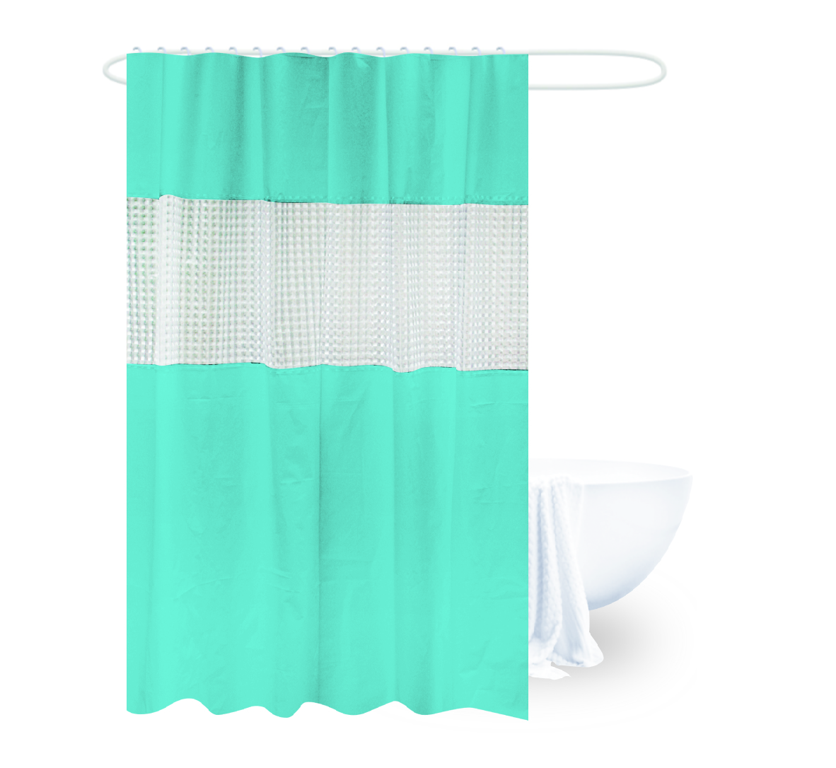 Color: Turquoise/Frosty Clear Latitude Run Hepworth 3D Striped Single Shower Curtain Add a touch of class to your bathroom with this Hepworth 3D Striped Shower Curtain! It is made of 100% PEVA, this vinyl shower curtain is non-toxic.