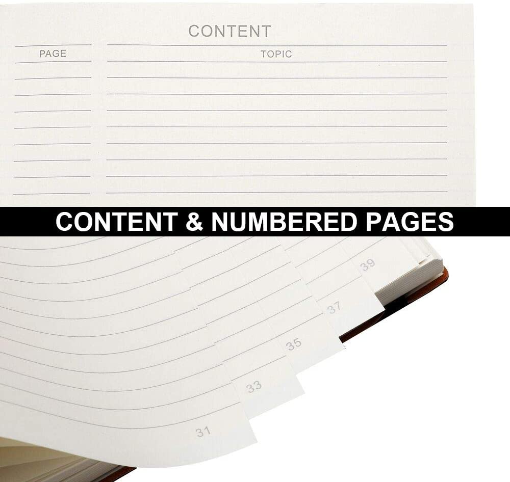 -Journal comes with an Elastic Closure,2 Bookmarks,1 Back Pocket,Contents Pages and Numbered Pages.