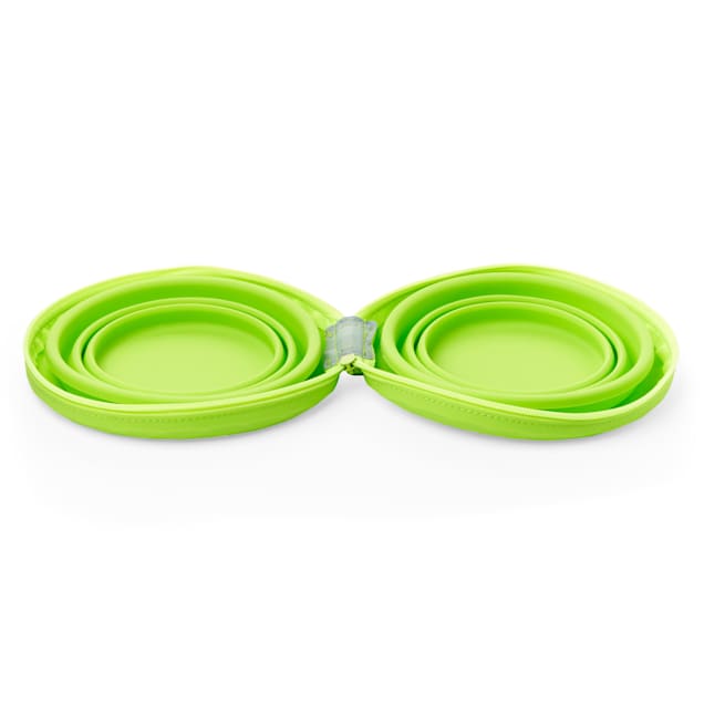 We know it can be hard to dish out a dining experience while out and about. That’s why we created the Open-Air Eats Green Zip & Sip Double Diner, your go-to solution when taking food and water to-go. Whether you’re enjoying a Sunday funday at the park or hitting the road for the great outdoors, this collapsible diner pops out and up in no time to help keep your furry family member nourished every step of the way.